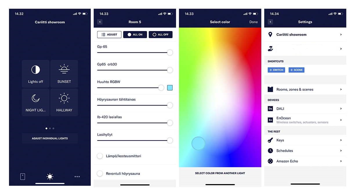 Nowadays, the systems are mostly wireless and intelligent. Different sensors can be connected to the system to measure the lighting level of the space and the mode of movement and presence. They understand the space and its use, and automatically adjust the light as needed. This way the space always has the correct, desired amount of light at the right time.
