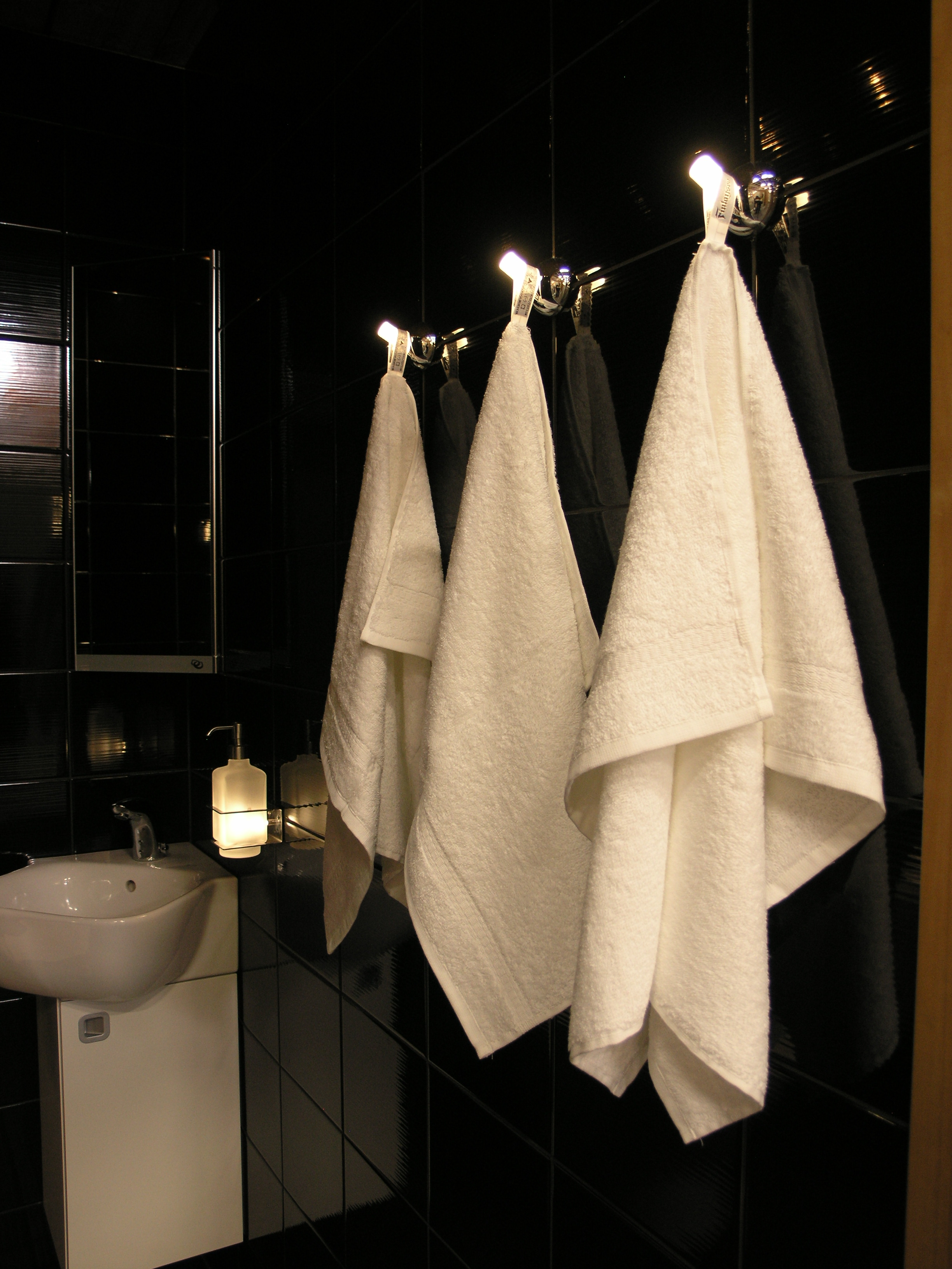 The towel knob is made of satin glass and stainless steel. The light source is a 1 W led.