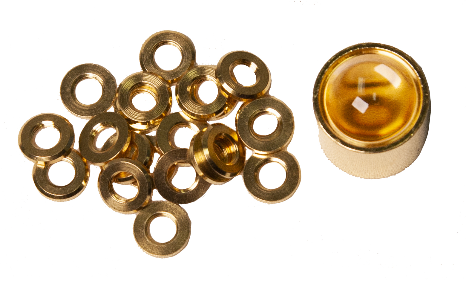 Lens set, including 21 locking rings M5 and a stove lens CR-18 M8. Colour gold.