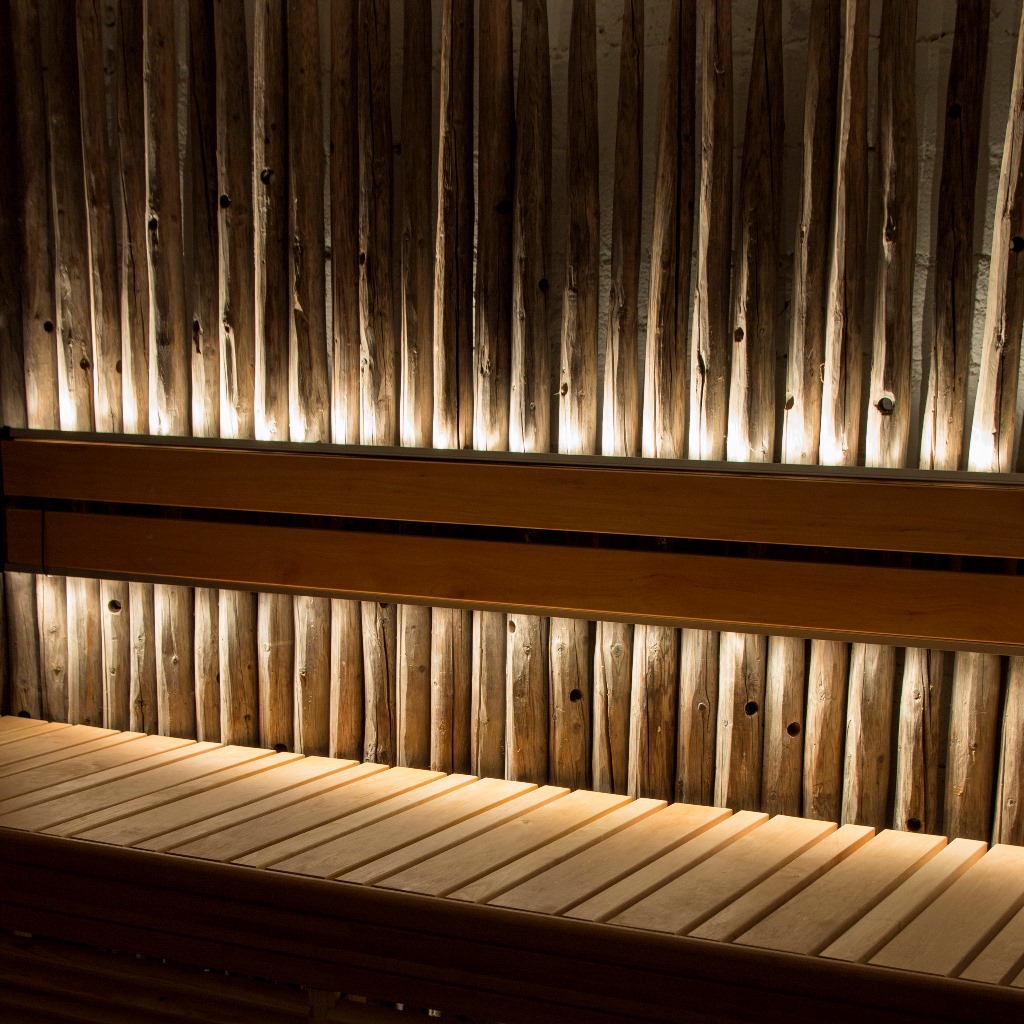 Le kit Sauna Linear s’installe facilement, même dans un sauna existant. Les fibres et le projecteur peuvent être montés en surface.