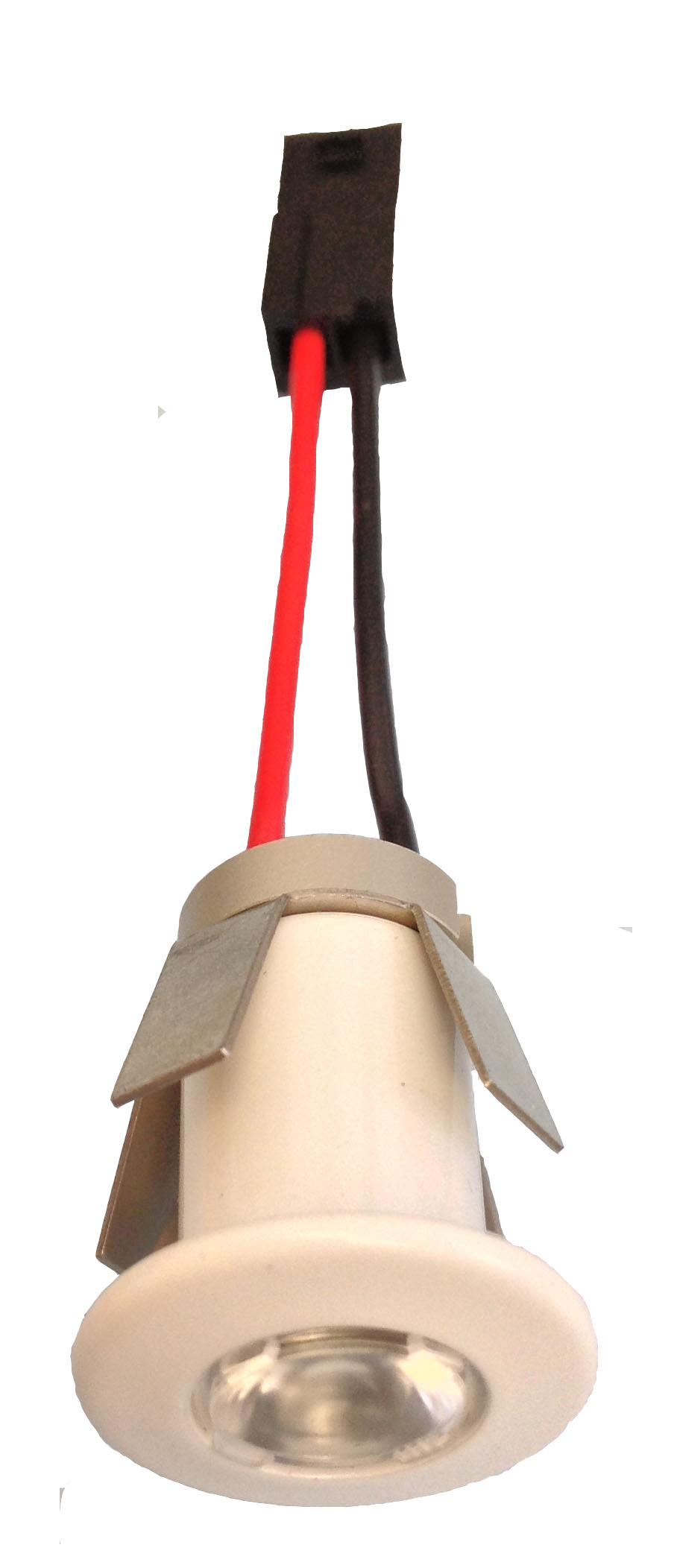 CR-05 is a small led light fitting with a clear lens, white. The power source is a 1W warm led (3000 K).