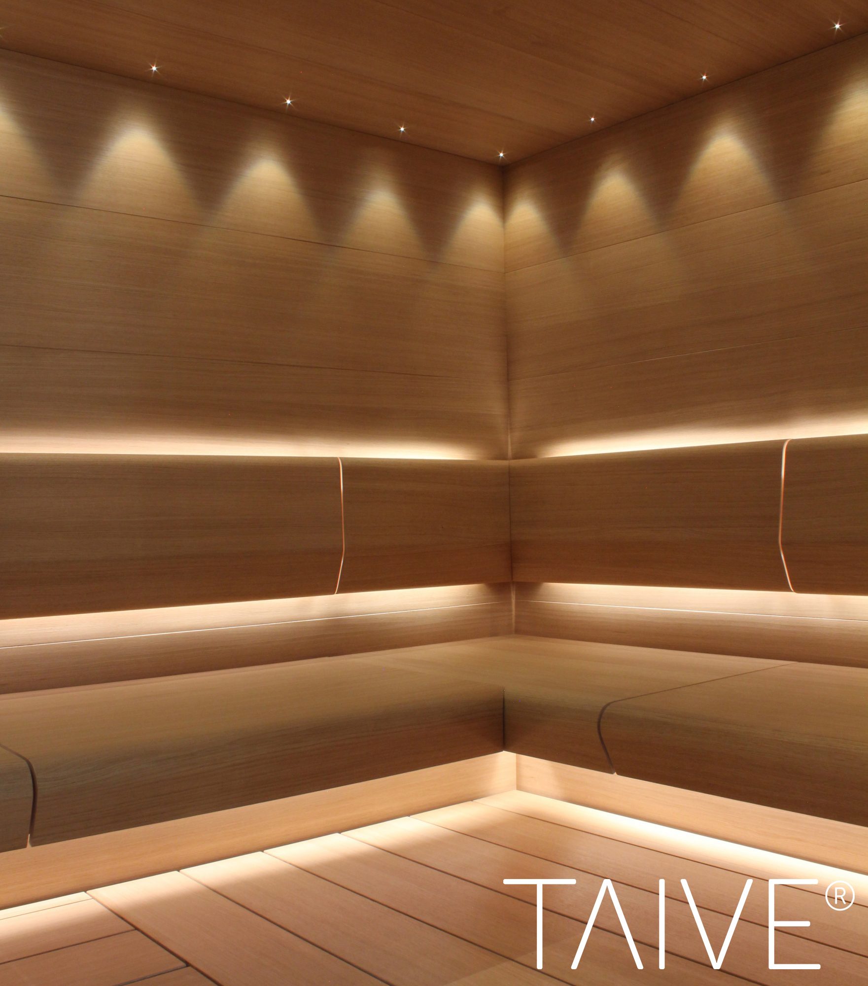 Панель обработана для применения в сауне, при этом она применима и в других помещениях. Габариты видимой части панели 2400 x 280мм, толщина 10 мм. Все четыре стороны со шпунтом, что способствует применению разных конфигураций панелей и дает возможность их удлинения. Поверхность – шпон «Hemlock” или березовый шпон CWP, каркас из березового многослойного шпона. Настенные панели TAIVE можно обработать теми же оттенками, что и полки.