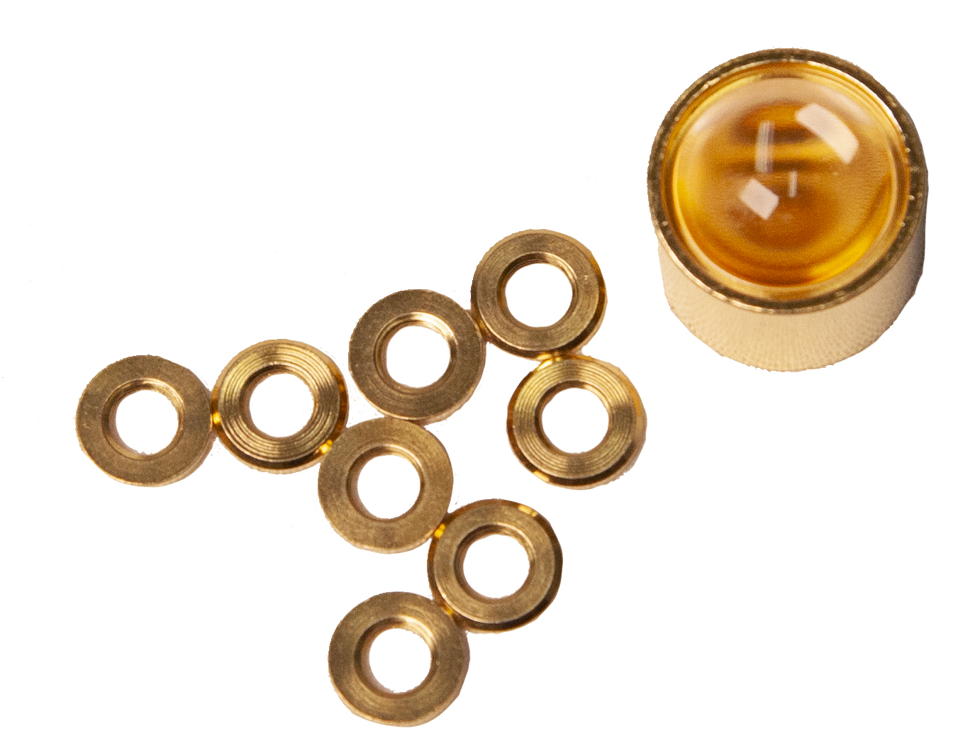 Комплект линз, включая 8 стопорных колец М5 и линзу для подсветки пара над каменкой CR-09 М5. Цвет золото.