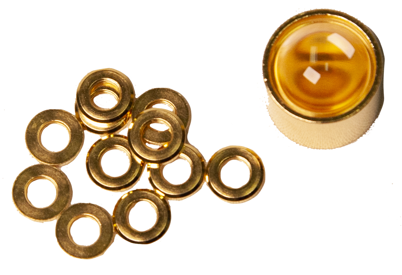 Комплект линз, включая 11 стопорных колец М5 и линзу для подсветки пара над каменкой CR-18 M8. Цвет золото.