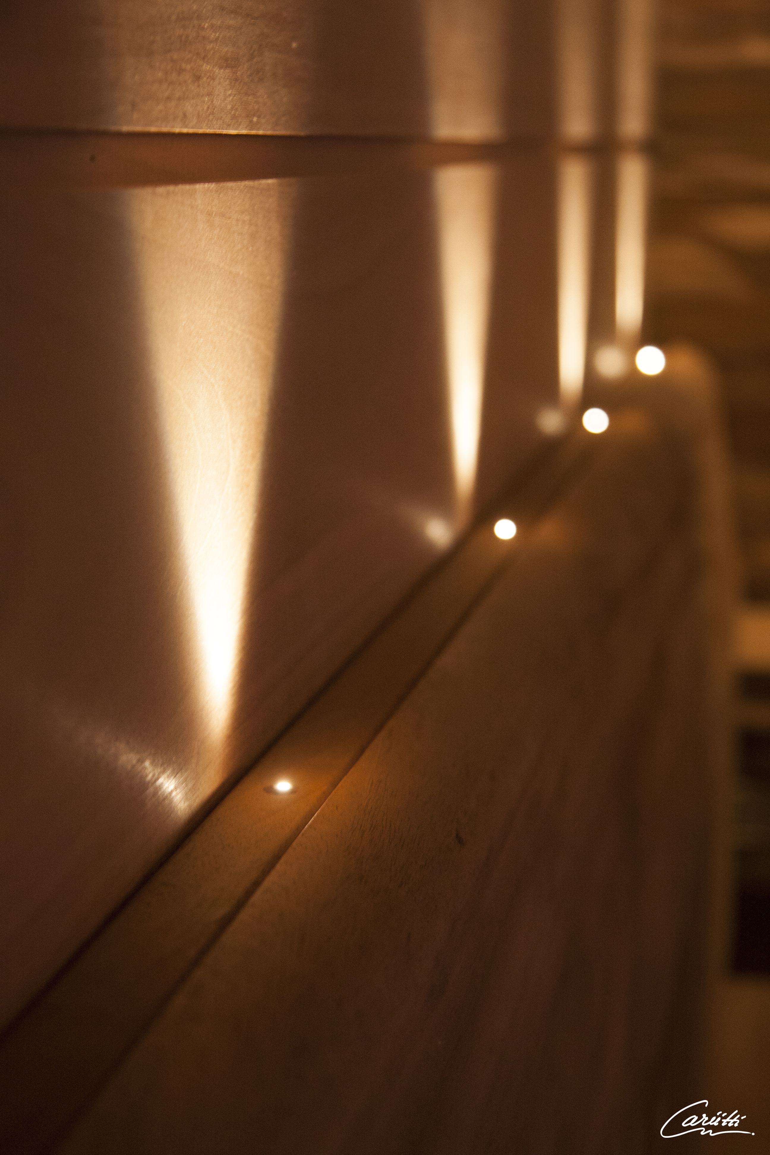 Sarjan projektori VPAC-1527 on suojausluokaltaan IP65 ja sen voi sijoittaa myös lauteiden alle.Syöttöjännitteestä himmennettävä,sopivia säätimiä ovat esim. 2619375 ja 2623306.
