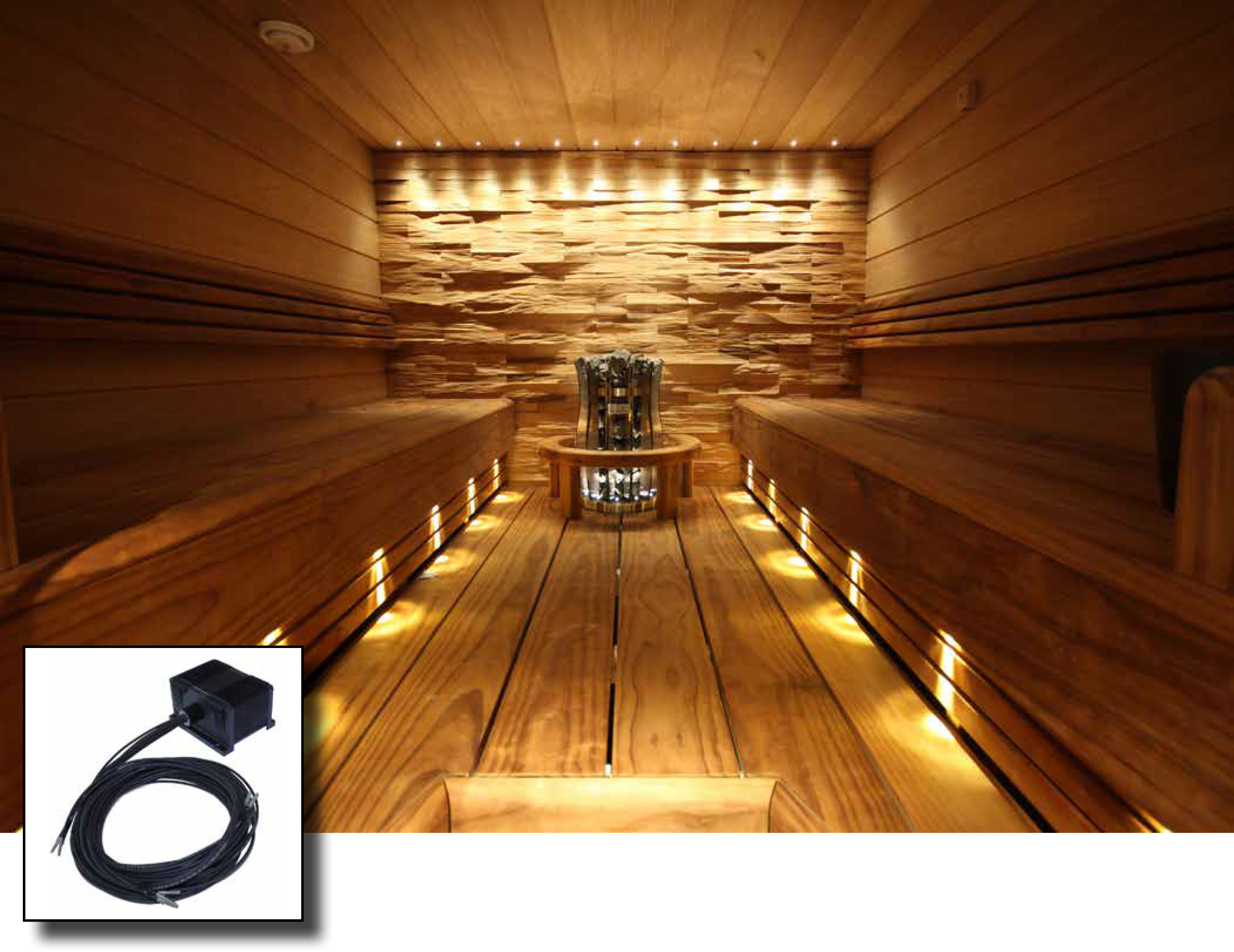 8-kuituinen saunavalaistussarja, jonka kuitupituudet ovat 2,5 – 3,5 m. Sarjaan sisältyy IP65 LED-projektori, kuitunippu, lukkorenkaat ja kiuaslinssi.