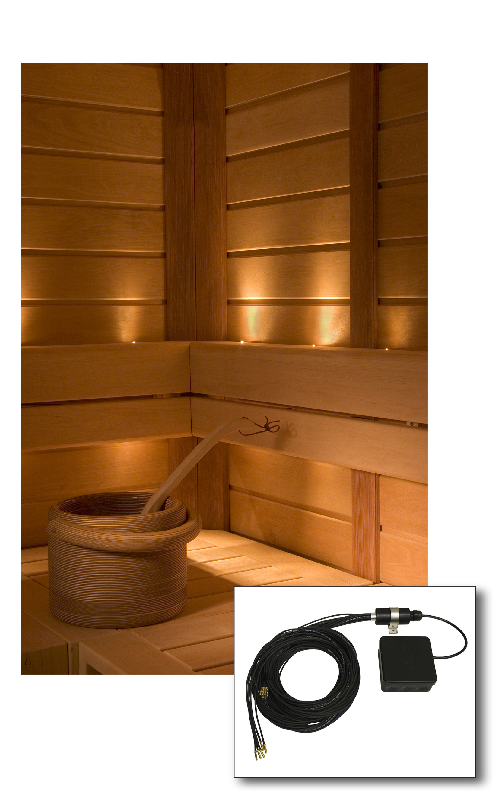- Projektorin suojausluokka IP55, voidaan asentaa saunaan lauteen alle, max. 80 cm lattiasta.