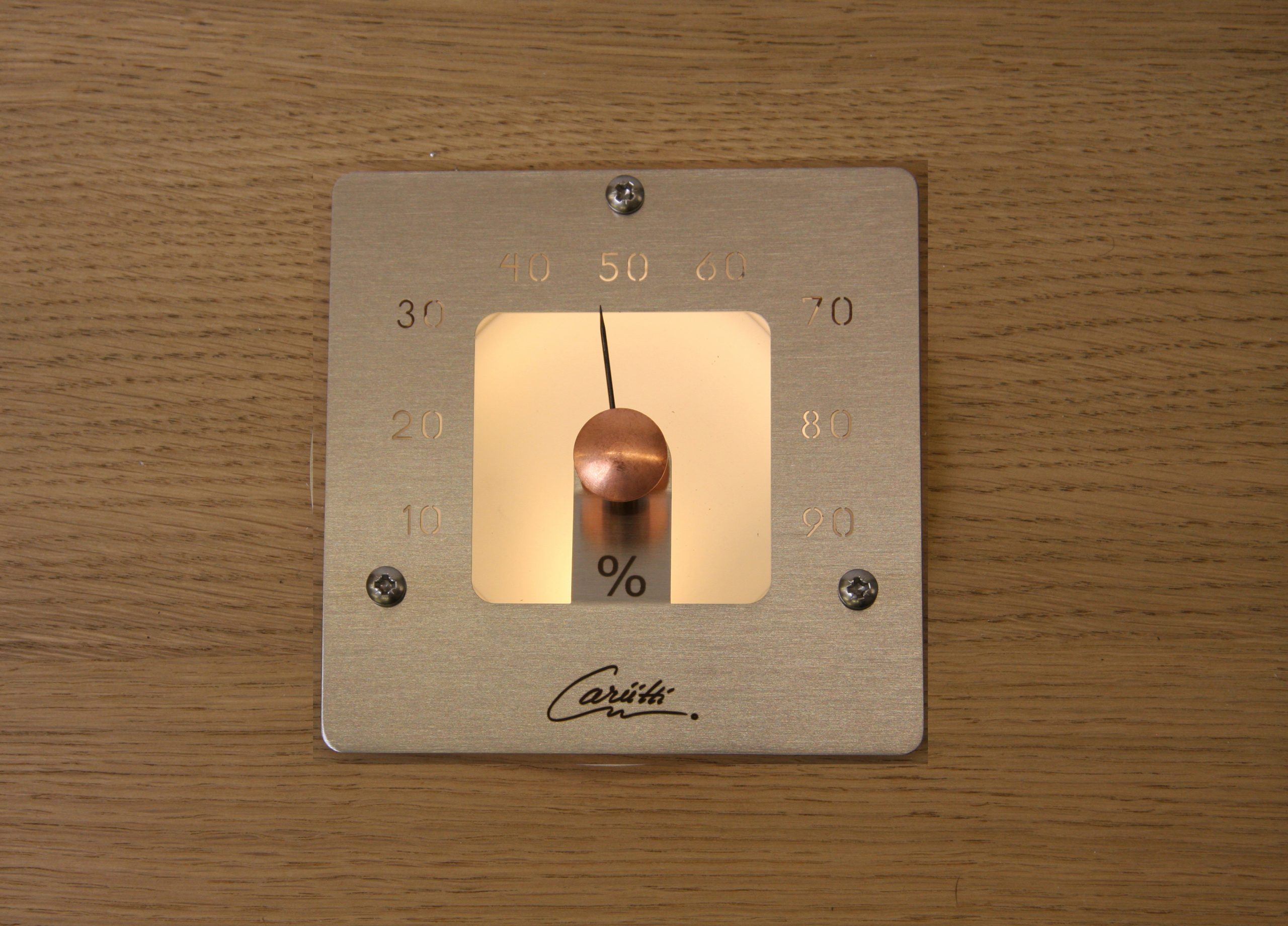 Neliön muotoinen saunan lämpömittari on valmistettu satiinimassalasista sekä hiotusta rst-asteikosta. Mittari valaistuu yhdellä ledillä tai yhdellä 2-4 mm kuidulla. Asennetaan paneloinnin yhteydessä.