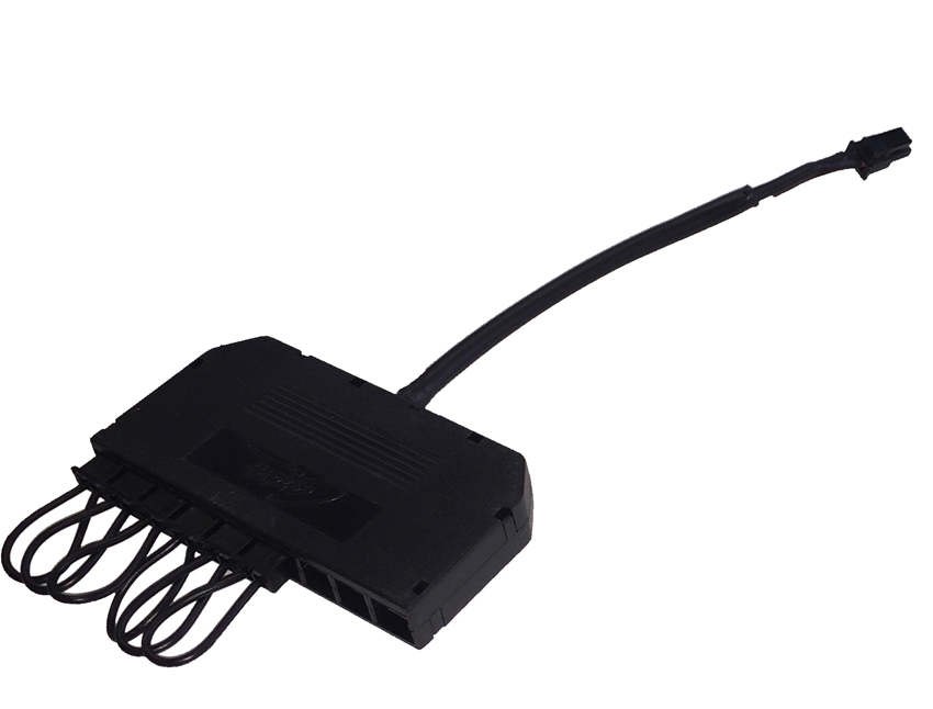 Sarjaankytkentä moduuli, Moduulin mukana tulee 7 kpl oikosulkupistokkeita. Huomioi että kytkettäessä jokainen pistokkeen paikka tulee olla kytkettynä ennen virran kytkemistä päälle. Tuote soveltuu käytettäväksi mm. seuraavien tuotteiden kanssa: 1532443 ja 1532296