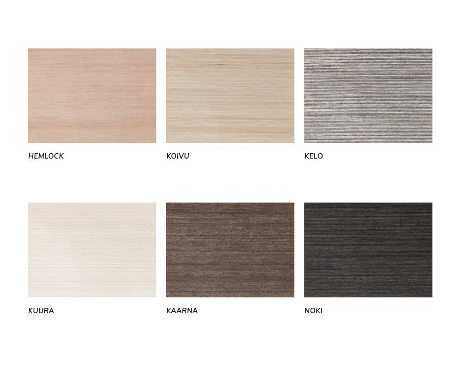 Saunavahalla voit käsitellä Aspectu -mittarin pinnan halutun sävyiseksi. Saunavaha on vesiohenteinen, luonnonvahaa sisältävä suoja-aine, joka petsimäisen ohuena imeytyy hyvin puuhun ja antaa sille luonnollisen kauniin, silkinhimmeän suojan. Valmisvärimme ovat Väritön (Aspectu Hemlock, Kelo ja Koivu) sekä Noki, Kaarna ja Kuura (Aspectu Koivu).